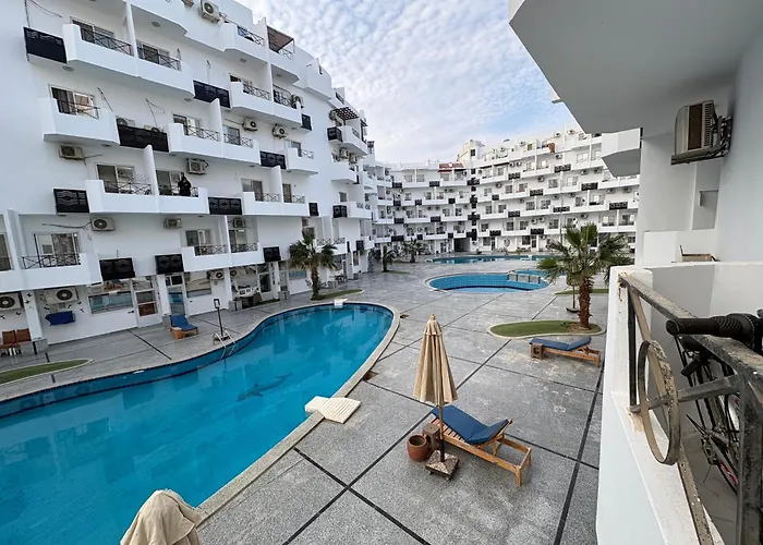 Enjoy the convenience of an equipped kitchen in Tiba View Hurghada apartment, allowing guests to prepare their own homemade meals. This apartment also includes a terrace.
